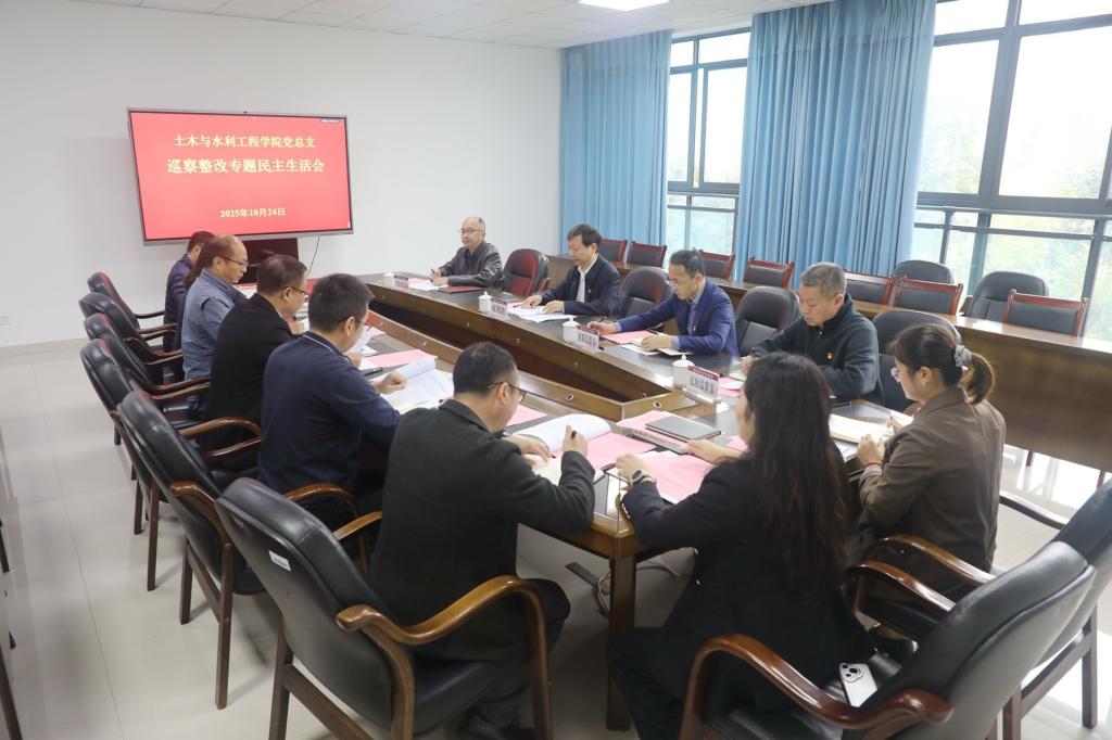为贯彻落实学校党委巡察整改工作要求,扎实推进巡察整改工作,10月24日下午,土木与水利工程学院党总支巡察整改专题民主生活会在知行楼347会议室举行,校长赵明阶参加会议并讲话,学校党政办公室(党委巡察办公室)、党委组织部、纪检监察室相关负责人,土木与水利工程学院班子成员、组织员等参加会议。会议由土木与水利工程学院党总支书记肖鹏主持。