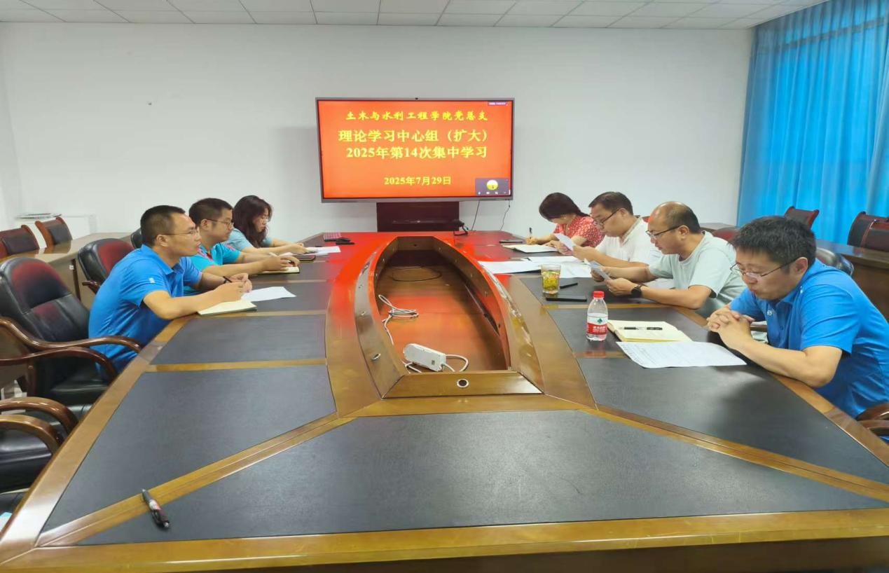 7月29日下午,土木与水利工程学院党总支理论学习中心组(扩大)2025年第14次集中学习会在知行楼M347会议室举行。学院党总支理论学习中心组成员、综合办、教务办和学生办主任、党务秘书等参加了学习会。会议由学院党总支书记肖鹏主持。