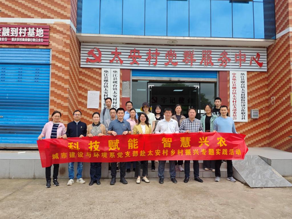 为深入贯彻习近平新时代中国特色社会主义思想,全面落实党的二十大和二十届三中全会精神,创新党建“双创”样板支部建设,充分发挥高校教师专业优势助力乡村振兴,4月11日,土木与水利工程学院党总支副书记包翠秋和城市建设与环境系党支部赴重庆市垫江县砚台镇太安村,与村党总支部联合开展了以“科技赋能·智慧兴农”为主题的党日活动。