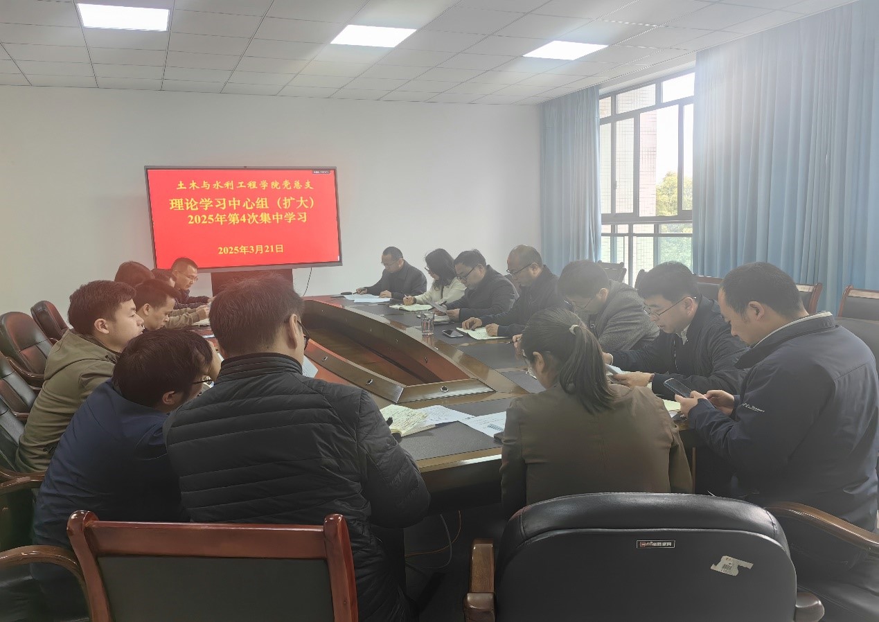 3月21日上午,土木与水利工程学院党总支理论学习中心组(扩大)2025年第4次集中学习在知行楼M347会议室召开。学院党总支理论学习中心组成员、组织员、各党支部书记、综合办、教务办和学生办主任、党务秘书等参加了学习会。会议由学院党总支书记肖鹏主持。