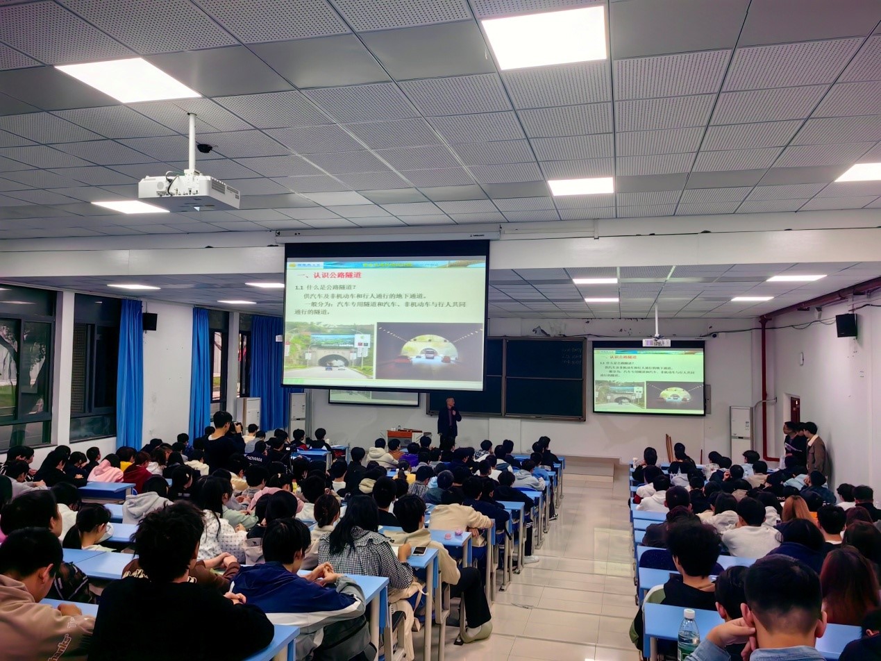 11月15日上午,应我校土木与水利工程学院邀请,重庆市设计大师、享受国务院政府“特殊津贴专家”、招商局重庆交通科研设计院有限公司原副总工程师程崇国在厚德楼G101教室为师生作了题为“公路隧道技术与发展”的报告。土木与水利工程学院道路与桥梁系骨干教师、研究生和本科生200余人聆听了报告。