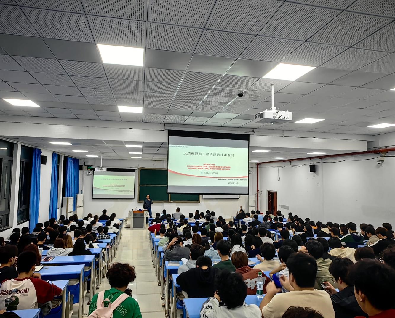 11月11日晚,应我校土木与水利工程学院邀请,重庆市设计大师、林同棪国际工程咨询(中国)有限公司总工程师刘安双在厚德楼G101教室为师生作了题为“大跨度混凝土梁桥建造技术发展”的报告。道路与桥梁系教师、研究生和本科生200余人聆听了报告。