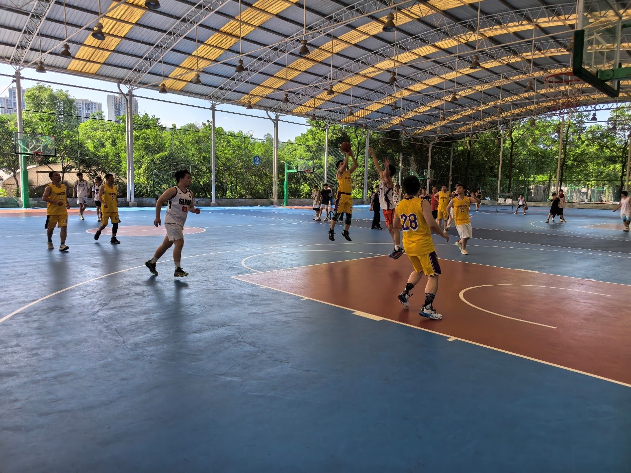 比赛中,教职工队步伐沉稳、眼神坚定、配合娴熟,毕业生队则活力四射、激情满满、攻防积极。双方你攻我守、比分交替上升,现场气氛紧张热烈,球员们挥洒汗水、奋力拼搏,展现出极强的竞技状态。最终,毕业生队以65:60领先5分赢得本场比赛的胜利。