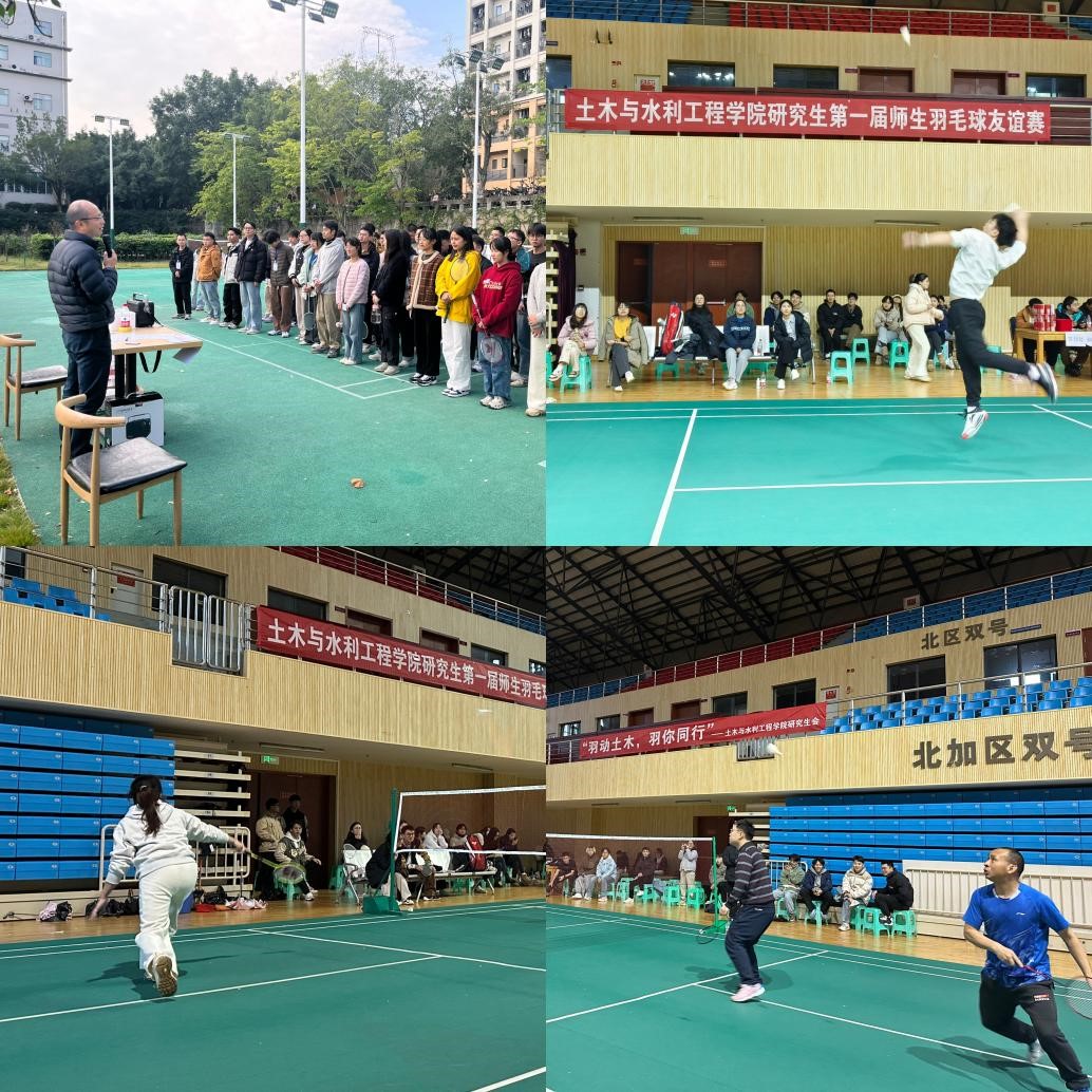 为增进师生间的交流与互动,促进研究生群体的身心健康和团队协作能力。11月27日至12月7日,土木与水利工程学院成功举办第一届“羽动土木 羽你同行”研究生师生羽毛球赛。