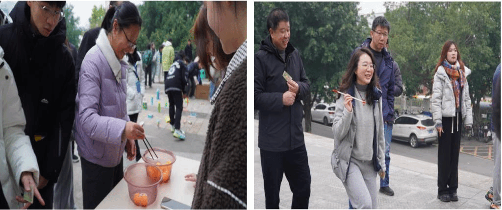 本次趣味运动会共设置了一个团体项目“力拔山兮”和三个个人项目“欢乐套圈”“二龙戏珠”“壶中求胜”。这些项目既考验了师生的力量和技巧,又强调了体力、眼力、智力的协调。赛场上,师生们齐心协力,奋勇争先,加油声、欢笑声此起彼伏,享受着这份难得的欢乐时光。在比赛间隙,老师们与同学们亲切交流,分享着彼此的感受和心得,加深了师生之间的情感联系。