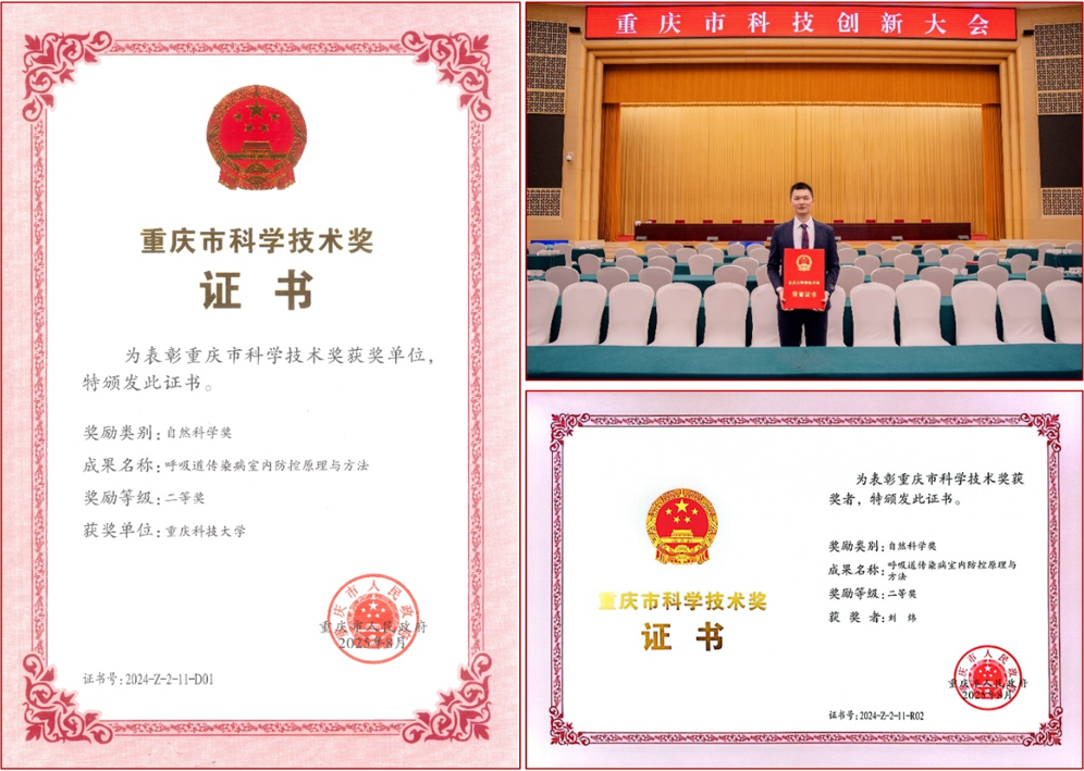 8月28日,重庆市科技创新大会在重庆渝州宾馆隆重召开。由重庆科技大学作为第一完成单位,我院城市建设与环境系刘炜副教授作为第二完成人的“呼吸道传染病室内防控原理与方法”荣获2024年度重庆市自然科学奖二等奖。