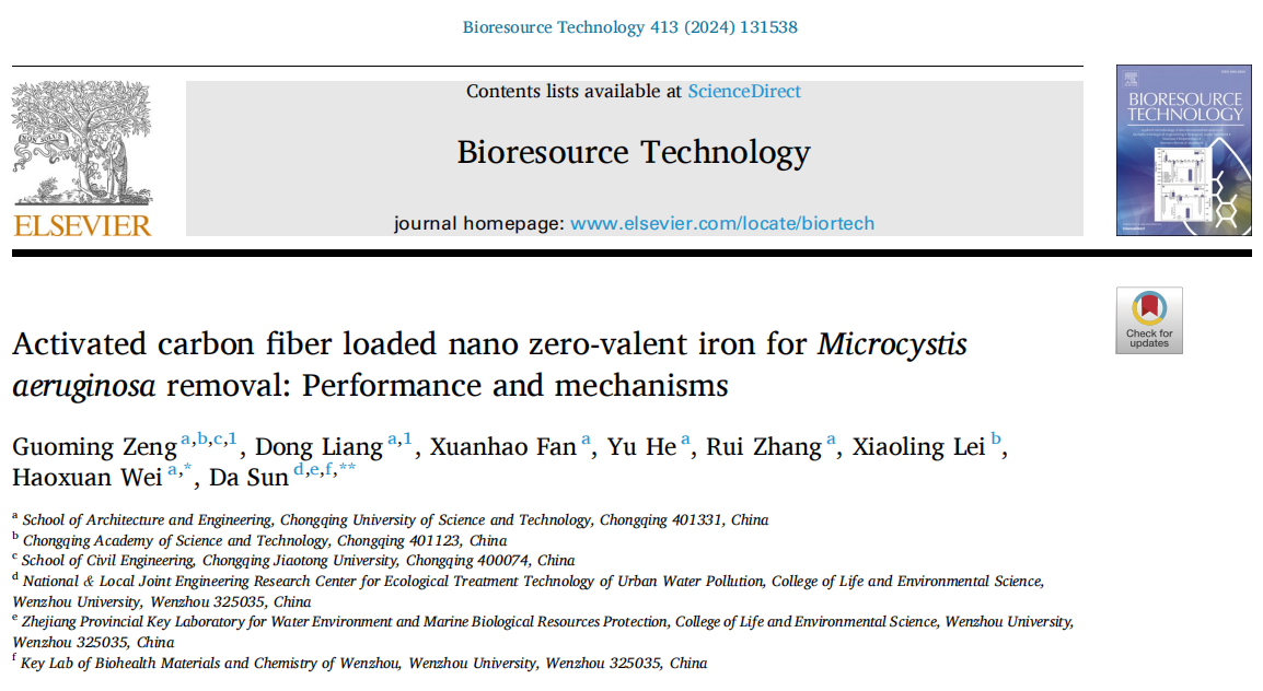 给排水科学与工程团队在环境领域权威期刊《Bioresource Technology》发表成果