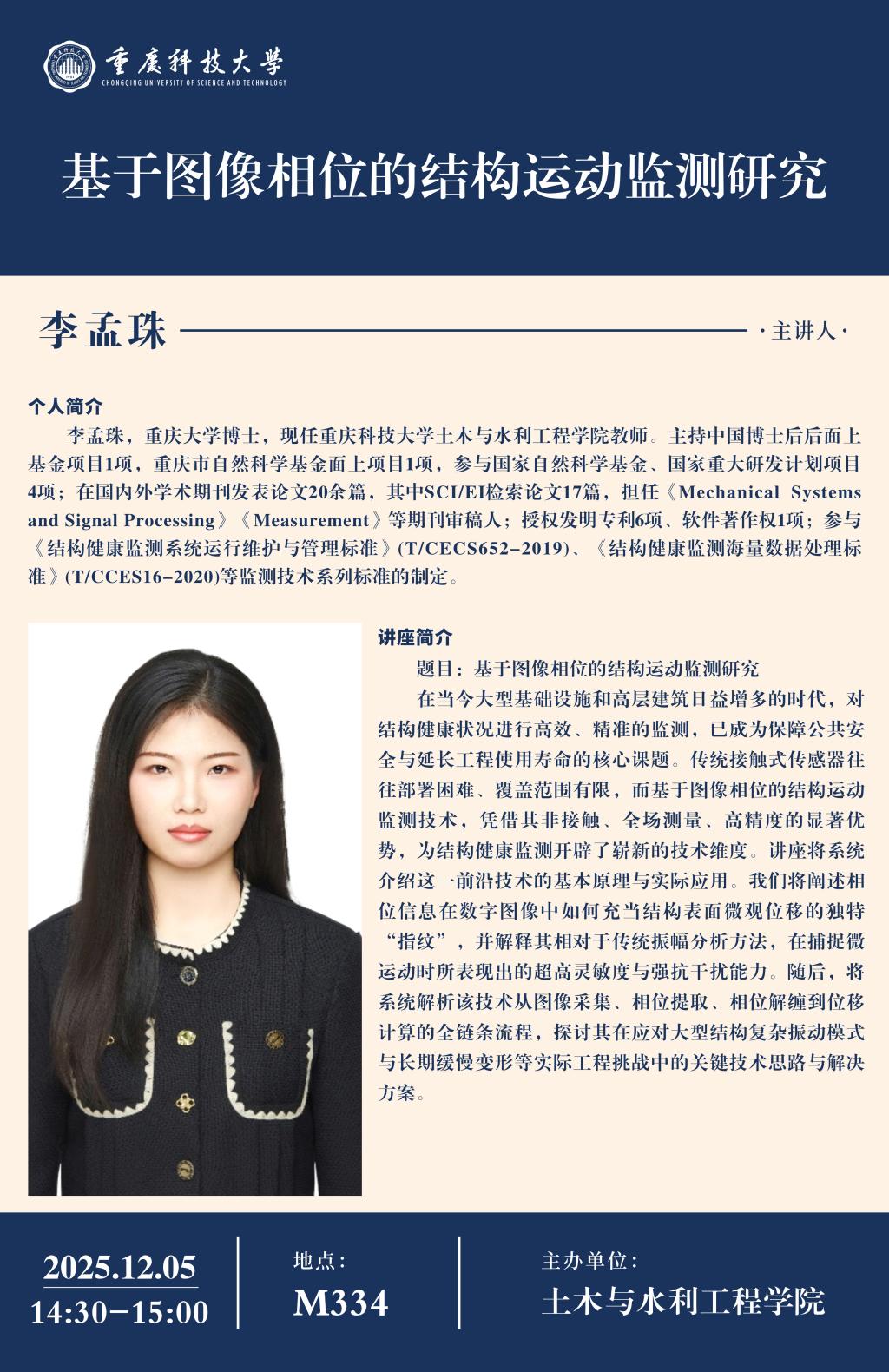 学术讲座-基于图像相位的结构运动监测研究